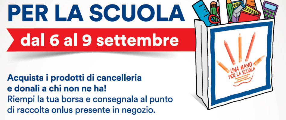 A settembre si rientra sui banchi di scuola e torna anche “Una mano per la scuola”: la campagna solidale che Coop Lombardia insieme alle Organizzazioni Non Profit del territorio, organizza per sostenere le famiglie in difficoltà con bambini e ragazzi in età scolare.
